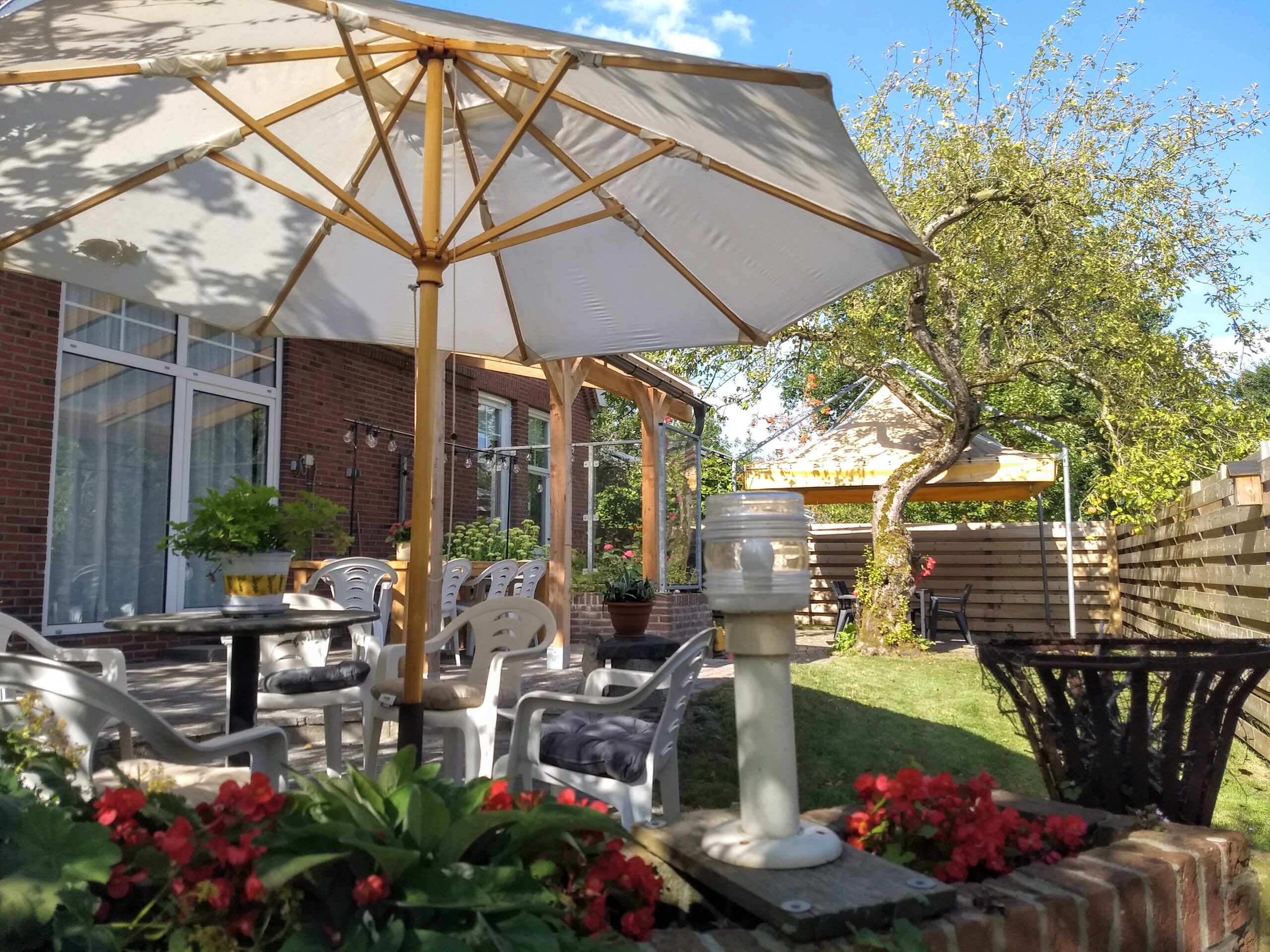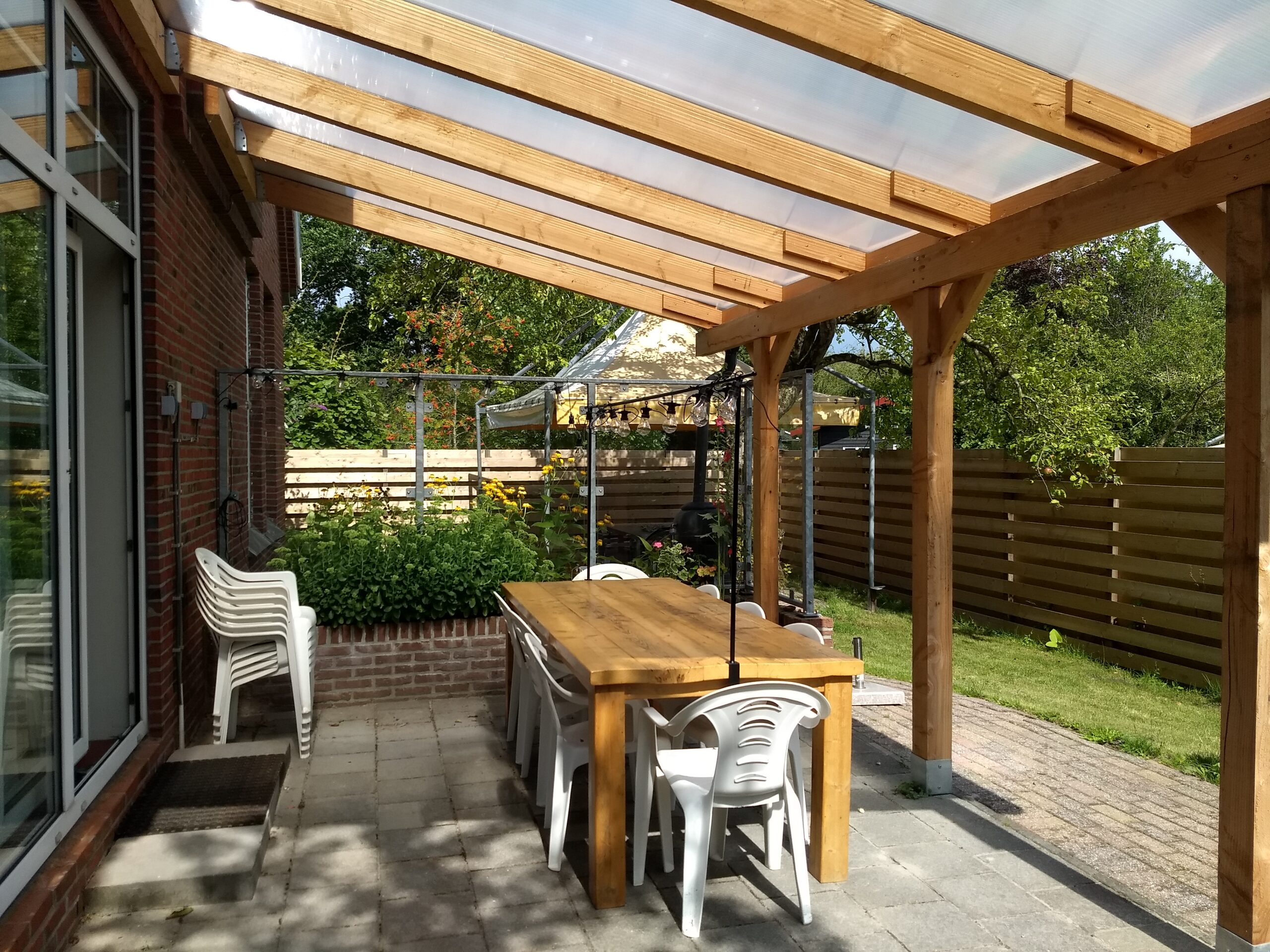 Overdekt zitje, gezien vanuit de huiskamer